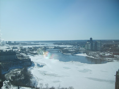 Buraya kadar gelmişken binanın ortasındaki o yüksek Barış kulesine çıkmadan olmaz değil mi? Asansörlerle çıkıyoruz. Güzel bir Ottawa manzarası var. Her taraf kar olduğu için pek bir şey görünmüyor şu anda maalesef :(